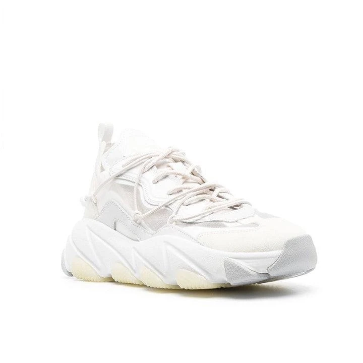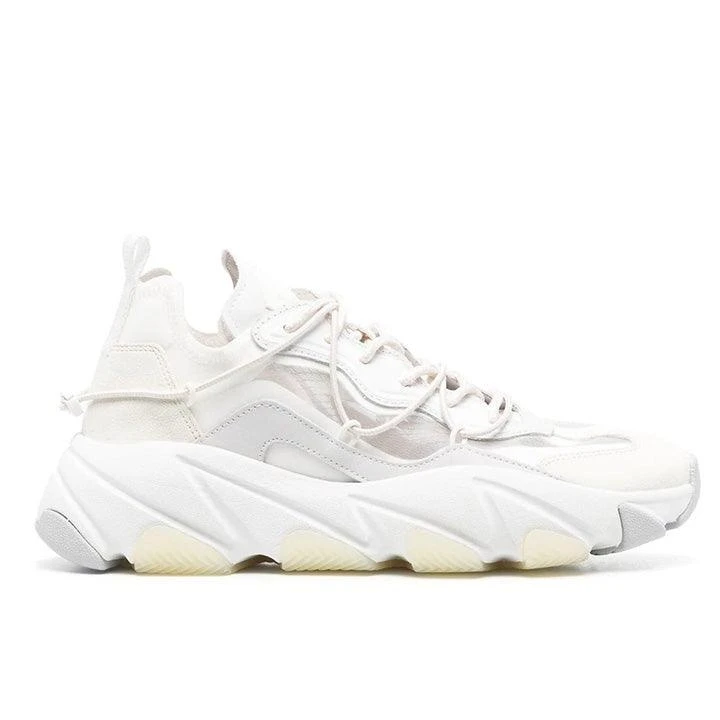 low-top lace-up sneakers from ASH featuring suede trim, panelled design, pull-tab at the heel, logo-embossed tongue, front lace-up fastening, round toe, chunky rubber sole and calf leather trim.