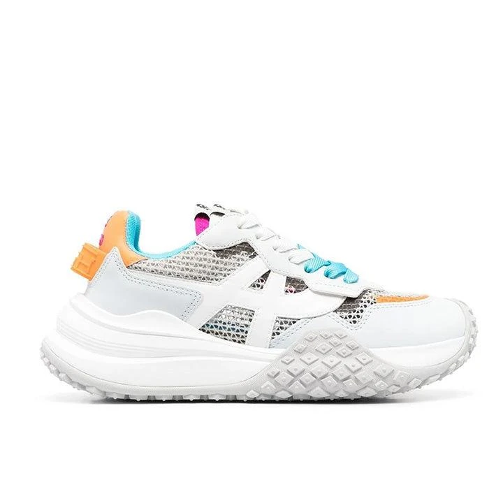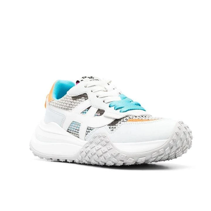 Joker Be Kind low-top sneakers from ASH featuring white/multicolour, panelled design, mesh panelling, cut-out detailing, front lace-up fastening, logo patch at the tongue, branded heel counter, pull-tab at the heel, almond toe and chunky rubber sole.ers from ASH featuring white, silver, calf leather, contrasting heel counter, metallic effect, logo patch at the tongue, round toe, front lace-up fastening, branded insole and platform sole.