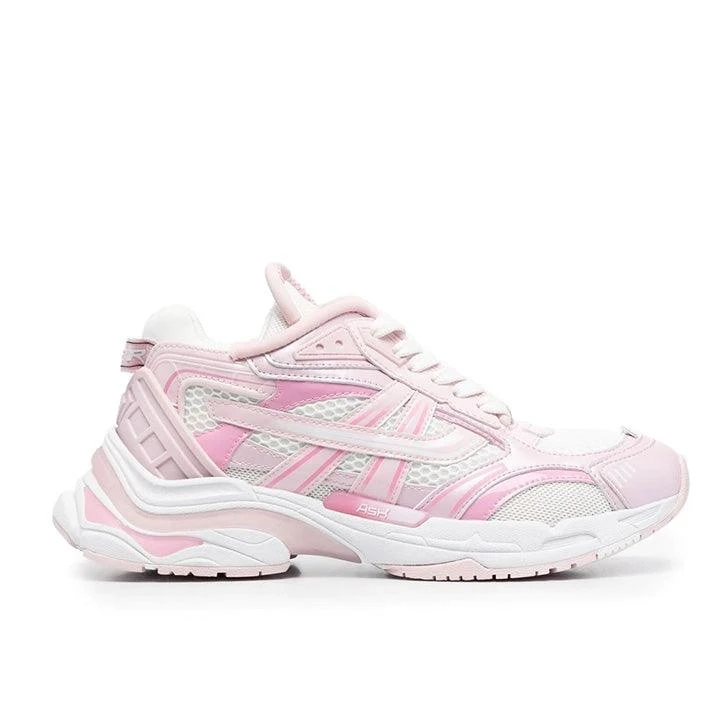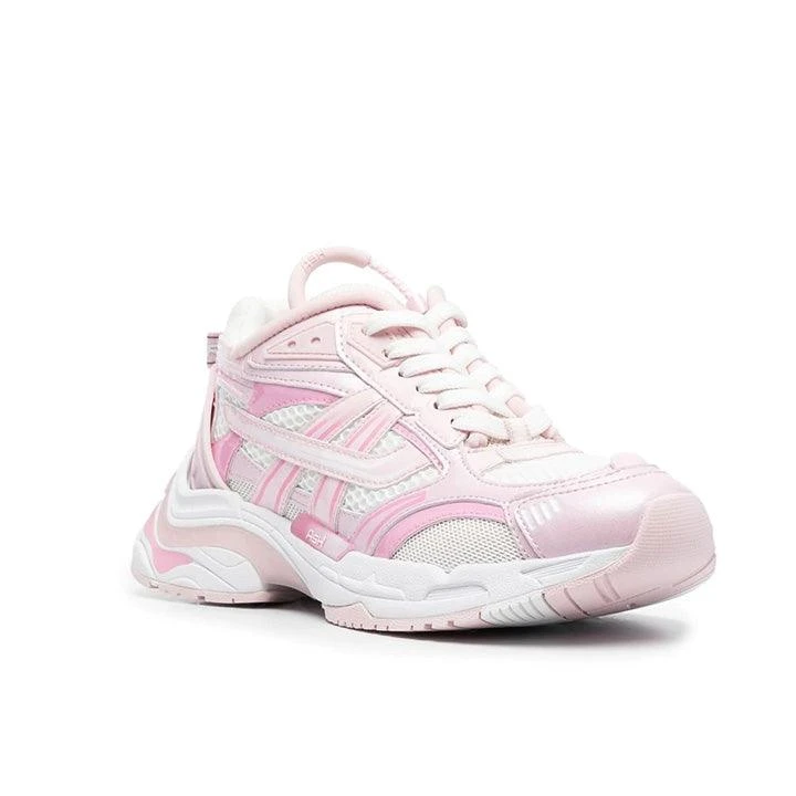 Race low-top sneakers from ASH featuring light pink, white, panelled design, mesh panelling, branded insole, round toe, front lace-up fastening and ridged rubber sole.