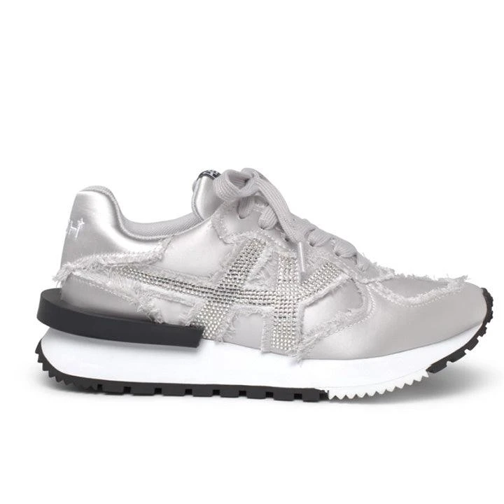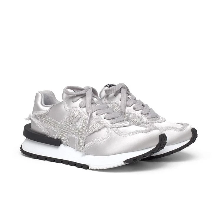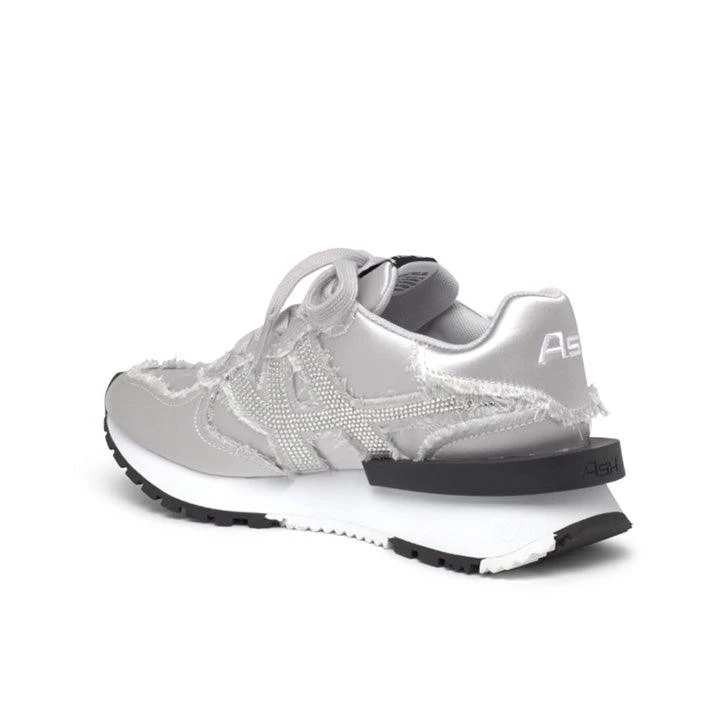 Toxic Satin low-top sneakers from ASH featuring Silver, satin finish, fringe detailing, crystal embellishment, logo patch to the side, logo patch at the tongue, front lace-up fastening, round toe, branded insole, branded heel counter and chunky rubber sole.