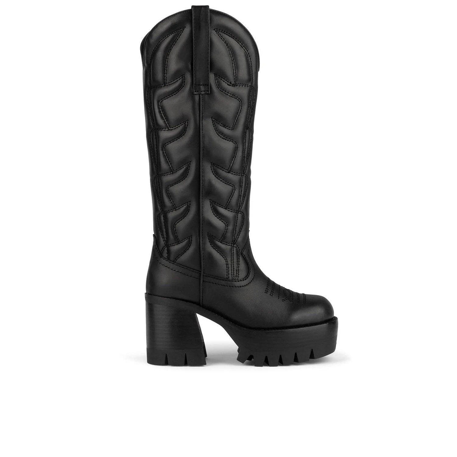 Platform knee-high cowboy boot with lug sole