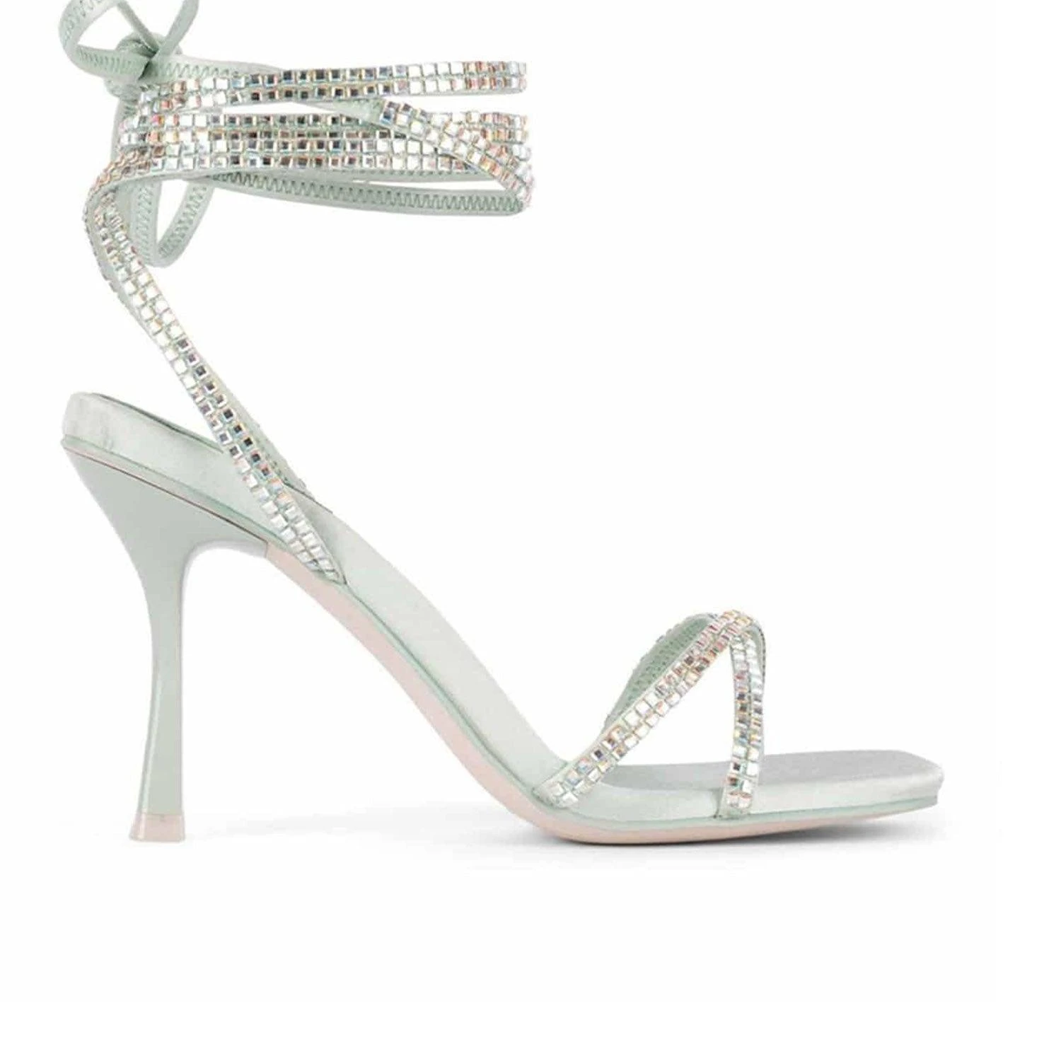 Gleaming iridescent rhinestones adorn a party-ready, flared-heel sandal designed with a plethora of shimmery straps for even more attitude. 3 1/2″ heel (size 8.5) Wraparound ankle ties Textile upper/leather and textile lining/synthetic sole Imported Women’s Shoes