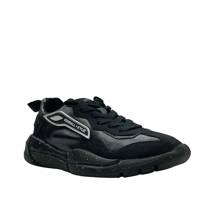 The KENDALL+KYLIE NORWAL BLACK SNEAKERS combine athletic and fashion elements for a timeless look. These sleek, black sneakers feature a padded insole for optimal comfort and a durable rubber outsole for increased traction and stability. Perfect for a casual day to night look.