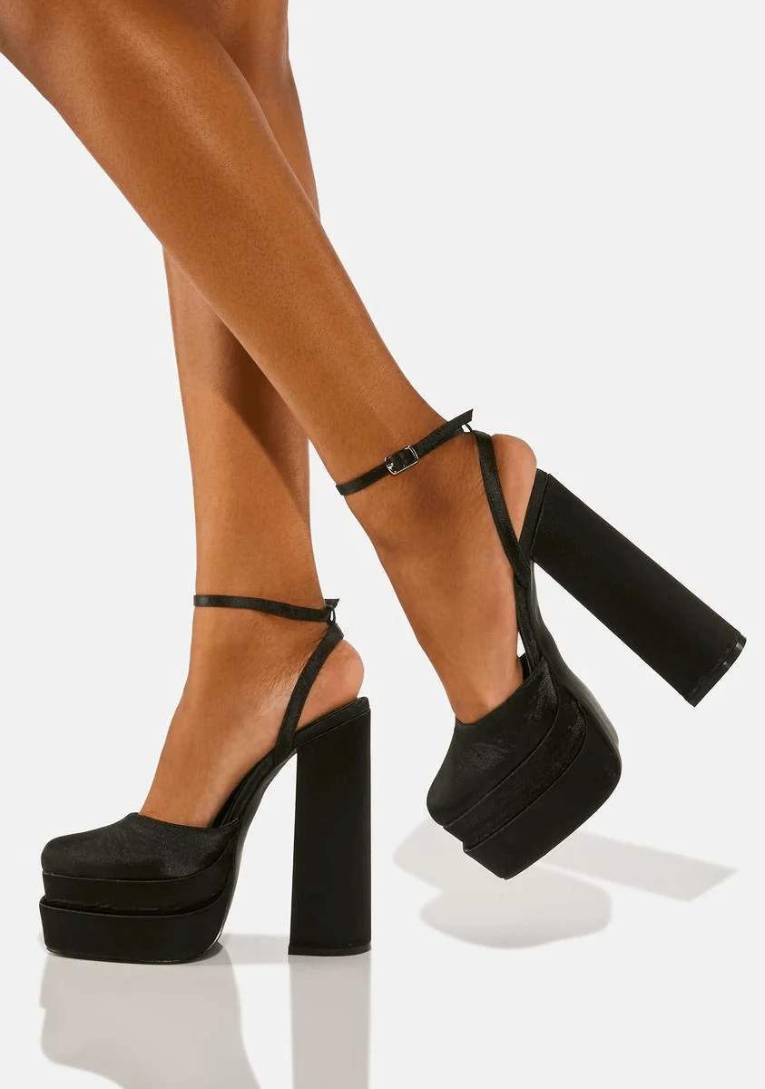 t’s time to meet your new faves, party season is here and you’re going to want Moonchild in your shoedrobe babe! These stunning, statement, platform heels are an absolute must-have and will elevate your evening looks. We’re teaming Moonchild with a black utility blazer dress and glitter earrings for the perfect glam glam look. Add these gorgeous black PLATFORM HEELS to your HIGH HEELS collection today…