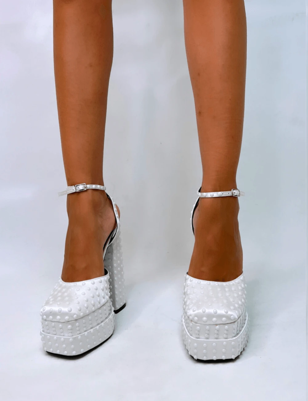 PUBLIC DESIRE – VENUS WHITE SATIN HEELS