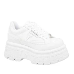 Women’s sneakers Windsor Smith Ghosted model made in leather and fabric with laces. White colour. Rubber sole. Comfortable and casual.